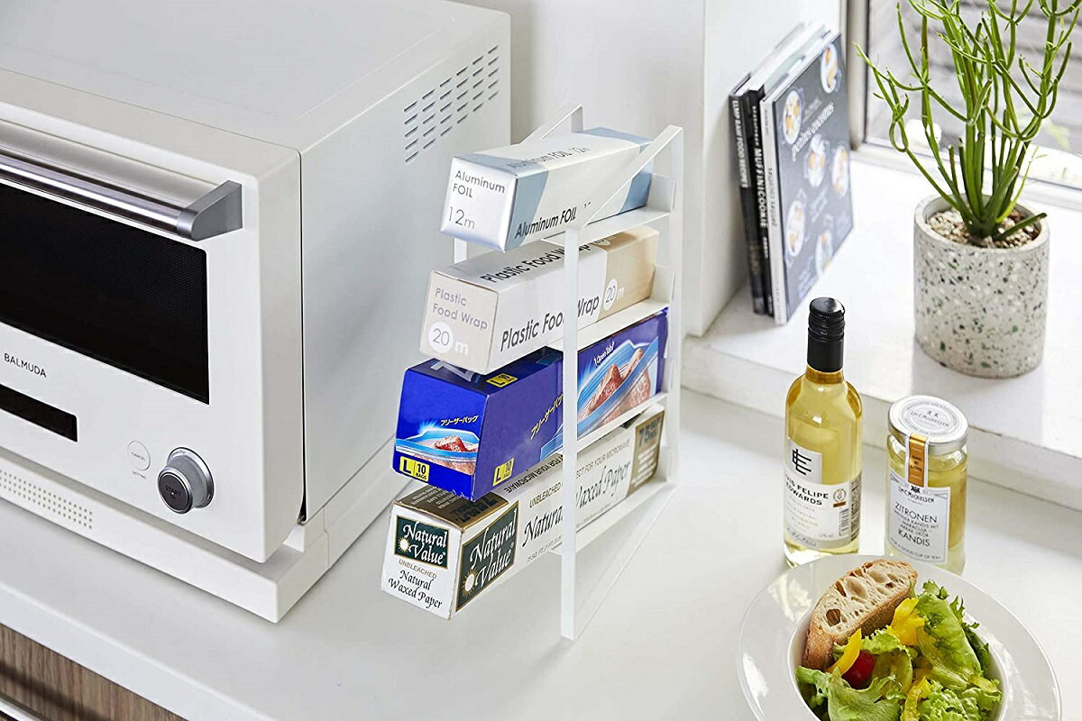 ラップスタンド ラップホルダー ラップ置き スリム設計 出し入れ簡単 4段 アルミホイル 保存バッグ ホワイト 白 キッチン収納 スリム オシャレ
